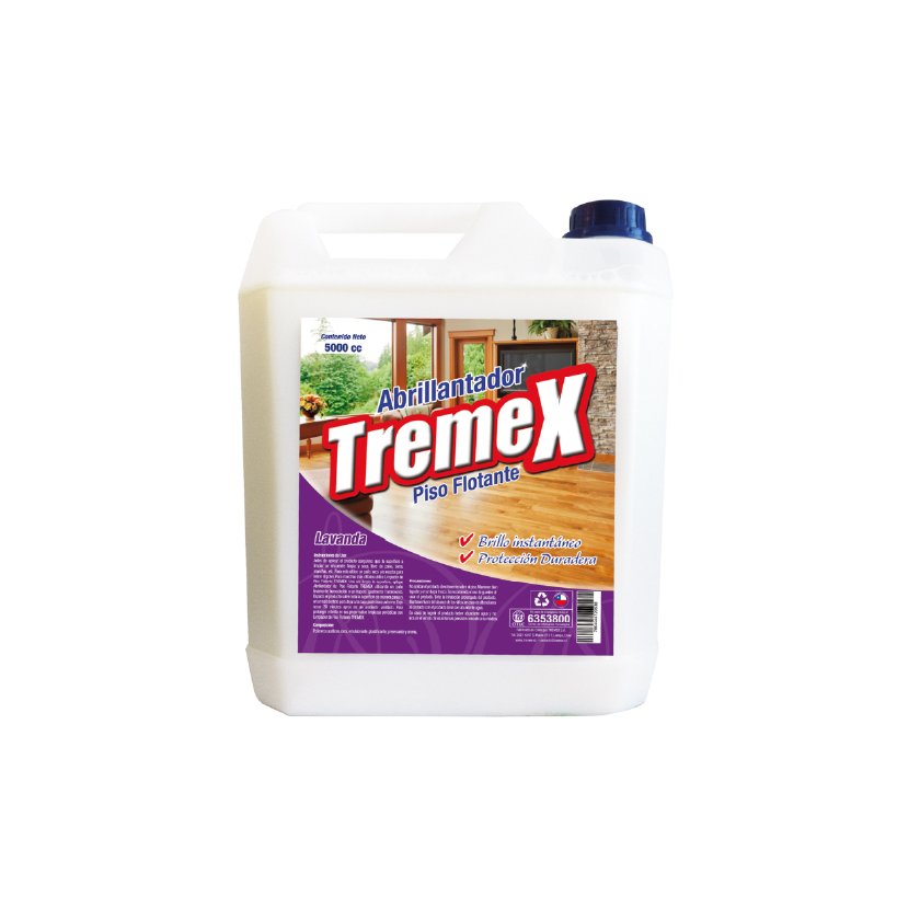 Abrillantador para piso flotante de la marca TREMEX. Su presentación de 5 L lo hace adecuado para tareas de limpieza, higiene y mantención en hogares, oficinas, comercios o entornos institucionales. Ayuda a realzar la apariencia y terminación del piso.