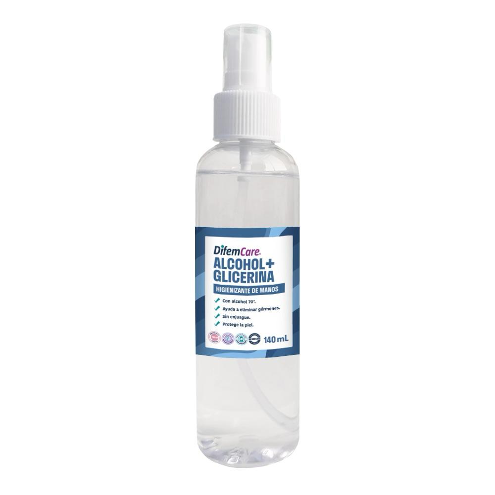 El Alcohol + Glicerina DifemCare es un higienizante de manos en base a alcohol desnaturalizado al 70% y glicerina. Gracias a su formulación con alcohol elimina el 99,999% de las bacterias, la glicerina por su parte, actúa como humectante natural que protege la piel de las manos y las deja suaves. Es un producto de secado rápido y no requiere enjuague. Su práctico formato con difusor en spray permite una fácil y rápida aplicación. Es hipoalergénico y no deja residuos.