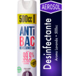Desinfectante ANTIBAC en aerosol versión lavanda, orientado a apoyar labores de higiene y sanitización de ambientes. Su presentación de 500 ml permite una aplicación cómoda en distintos espacios del hogar, oficina, comercio o áreas compartidas.