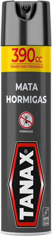 Insecticida TANAX en aerosol mata hormigas. Presentación de 390 ml para control de plagas en hogares, oficinas y áreas exteriores.