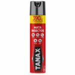 Insecticida TANAX en aerosol mata insectos. Presentación de 390 ml para control de plagas en hogares, oficinas y áreas exteriores.