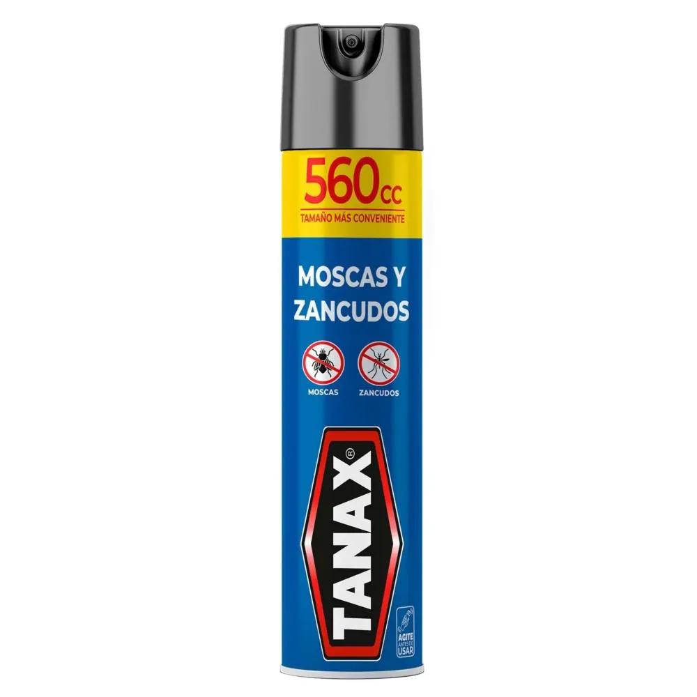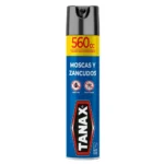 Insecticida TANAX en aerosol contra moscas y zancudos. Presentación de 560 ml para control de plagas en hogares y oficinas.