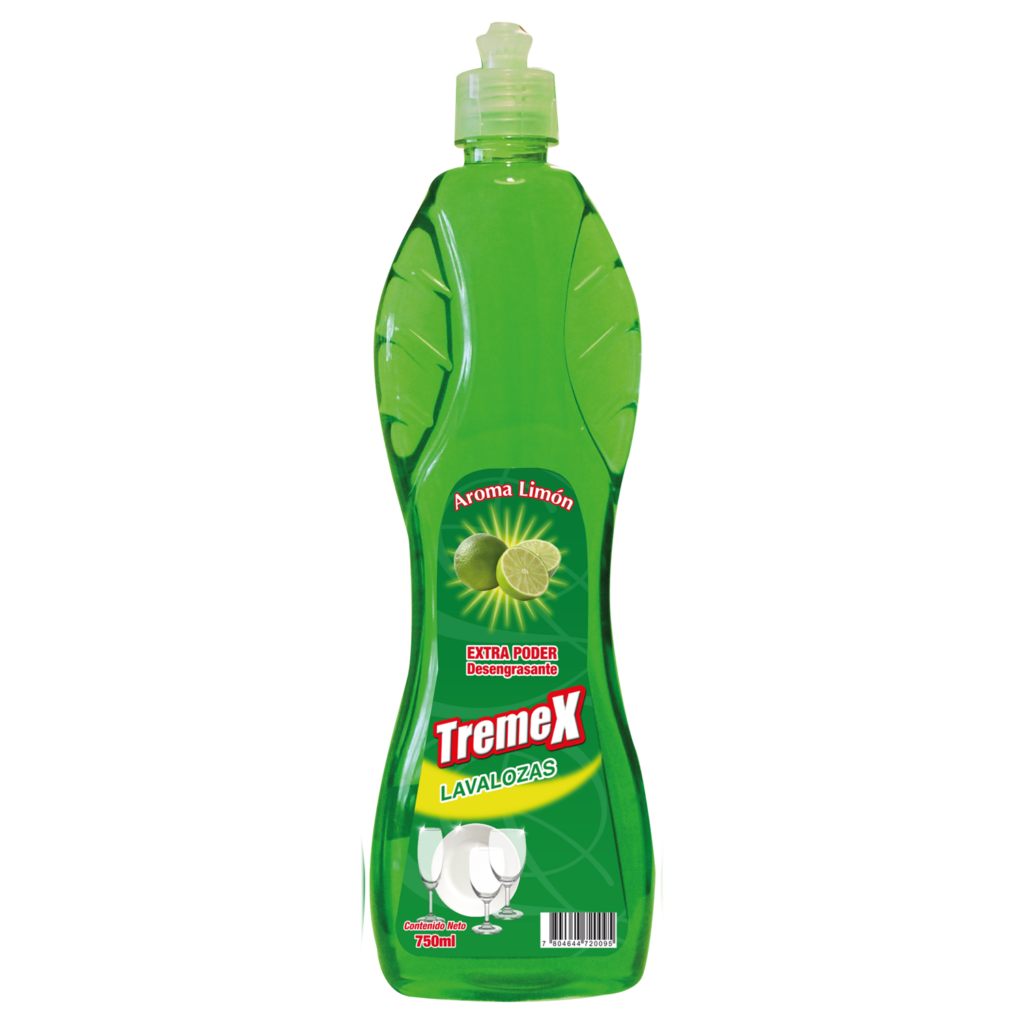 Lavaloza líquido TREMEX aroma limón verde, 750 ml. Limpieza diaria de loza, utensilios y elementos de cocina.
