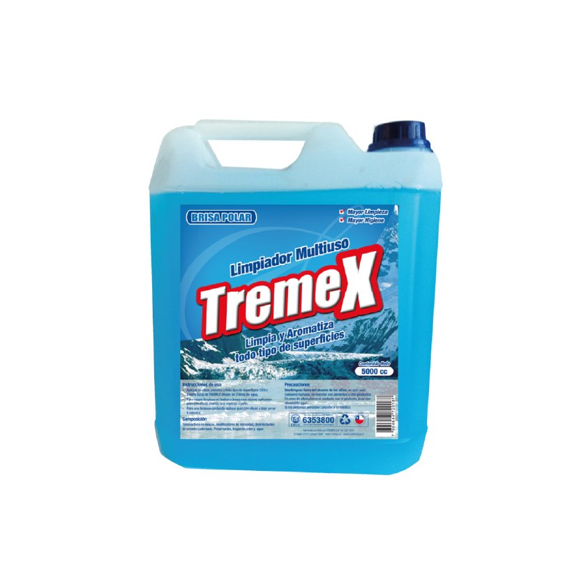 Limpiador de piso TREMEX aroma brisa polar, 5 L. Aseo y mantención diaria de pisos en comercios y entornos institucionales.